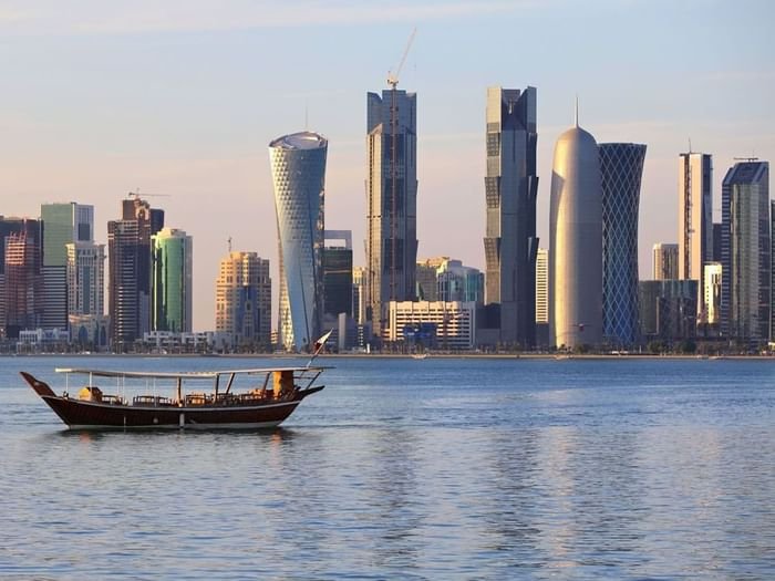 Our luxury hotel in Doha is not only a marvel of architectural, engineering, and technical design but also an iconic landmark in the cityscape. Adorned with tens of thousands of LED lights, its distinctive shape resembles a colossal torch that illuminated the skyline during the 2006 Asian Games in Doha. With a total of 165,000 LED-Dots, towering at a height of 130m, it boasts the World’s Largest External 360° Screen, a testament to its innovative and visionary design—recognized by the Guinness World Records.